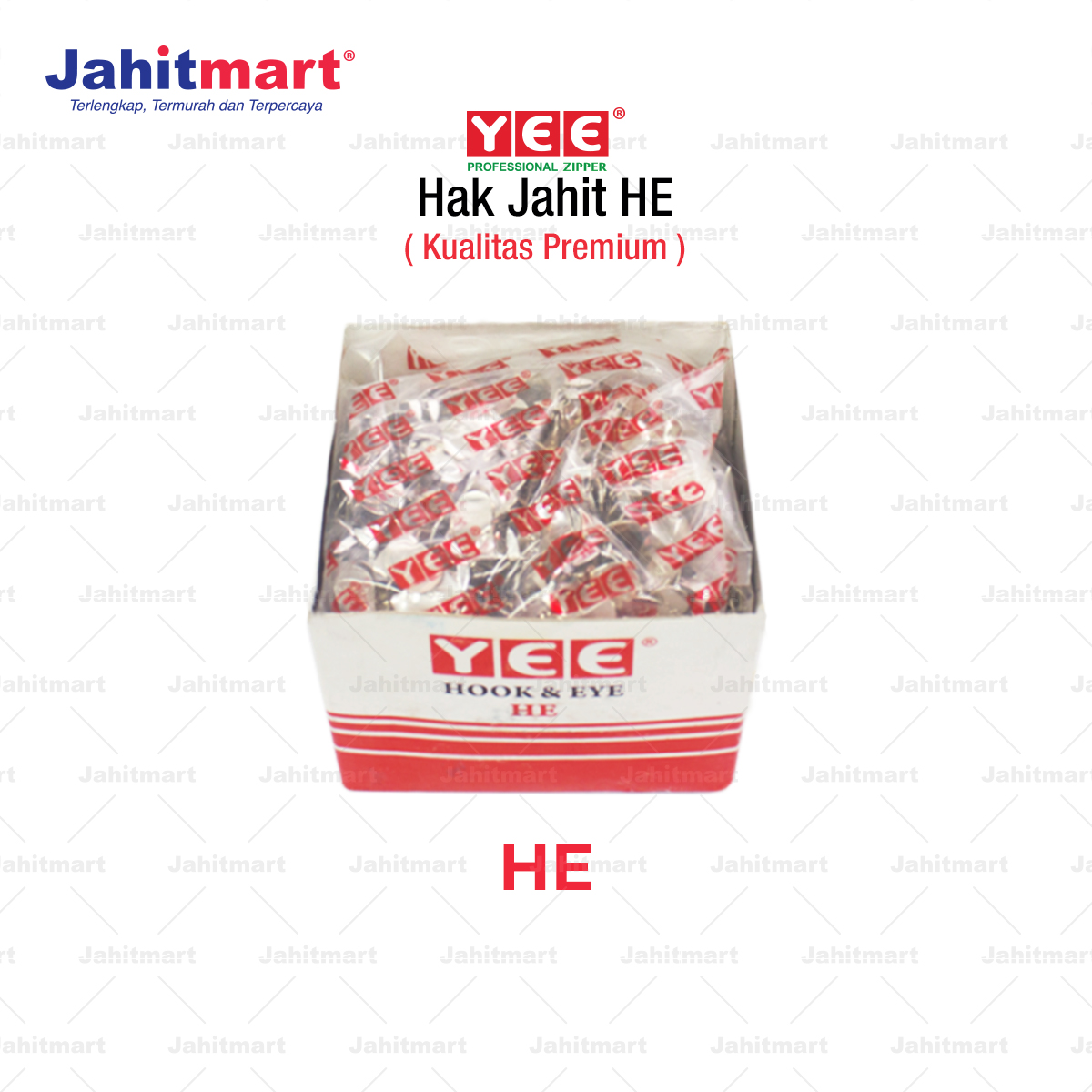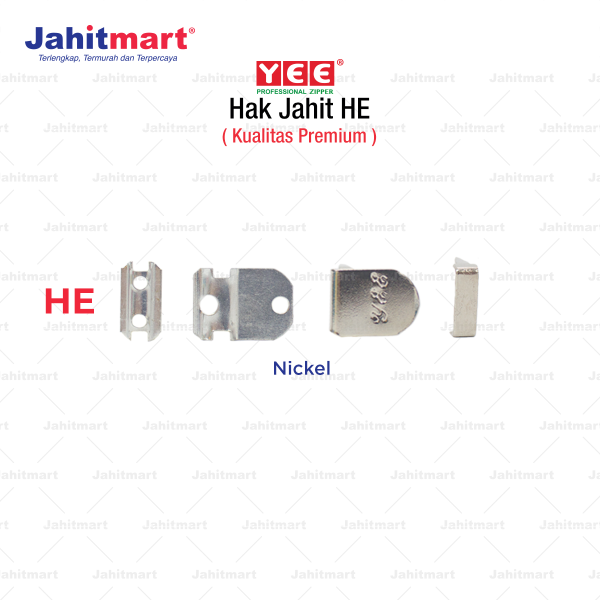 Hak Jahit “YEE” HE merupakan salah satu jenis pengait yang berfungsi untuk menutup bagian belahan secara sempurna, pada umumnya hak ini dipasang pada rok ataupun celana.