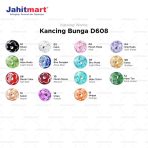 Kancing Bunga D608 merupakan jenis kancing variasi yang dapat digunakan untuk pakaian wanita seperti kemeja, blus, gaun, rok ataupun pada pakaian anak-anak.