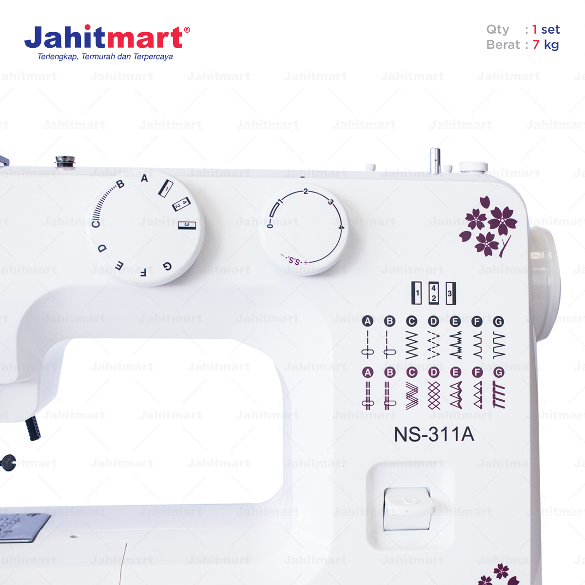 SKU: 450 06 02 01 01 Kategori: MESIN JAHIT & MESIN POTONG KAIN, MESIN JAHIT RUMAH TANGGA PORTABLE Tag: JANOME, JANOME NS 311A, Mesin Jahit, Mesin Jahit Portable