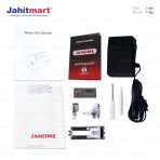 – 1x Tool Kit Set provided by JANOME (sepatu lobang kancing, sepatu blindstitch, sepatu zipper, oil, obeng, jarum, spool, dll.)