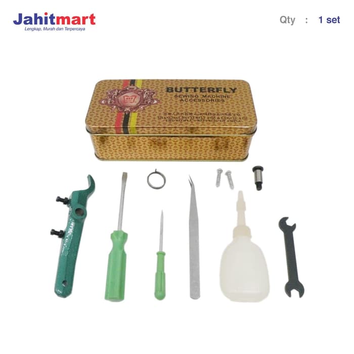 – Tool Kit Mesin BUTTERFLY GN-1 (Obeng, Jarum, Pisau Obras, Pinset, dll.)