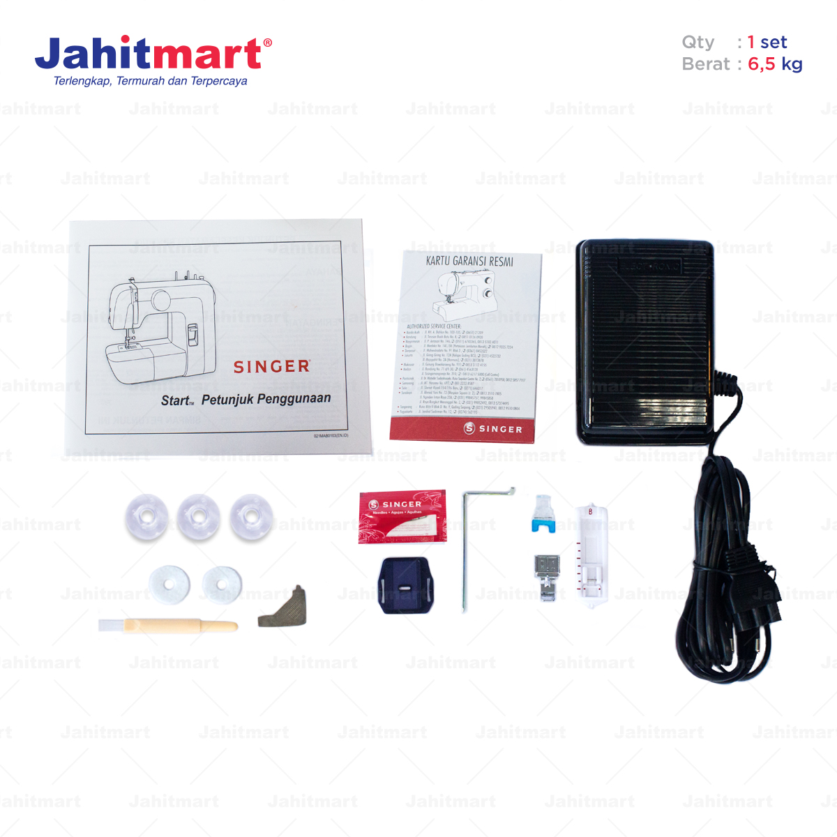 – 1x Tool Kit Standard (1 Bks Jarum Singer (isi 10),3-5pcs Bobbin/Spool Plastik,3-6pcs Sepatu/Kaki Jahit Standard,Pendedel Benang,dll)