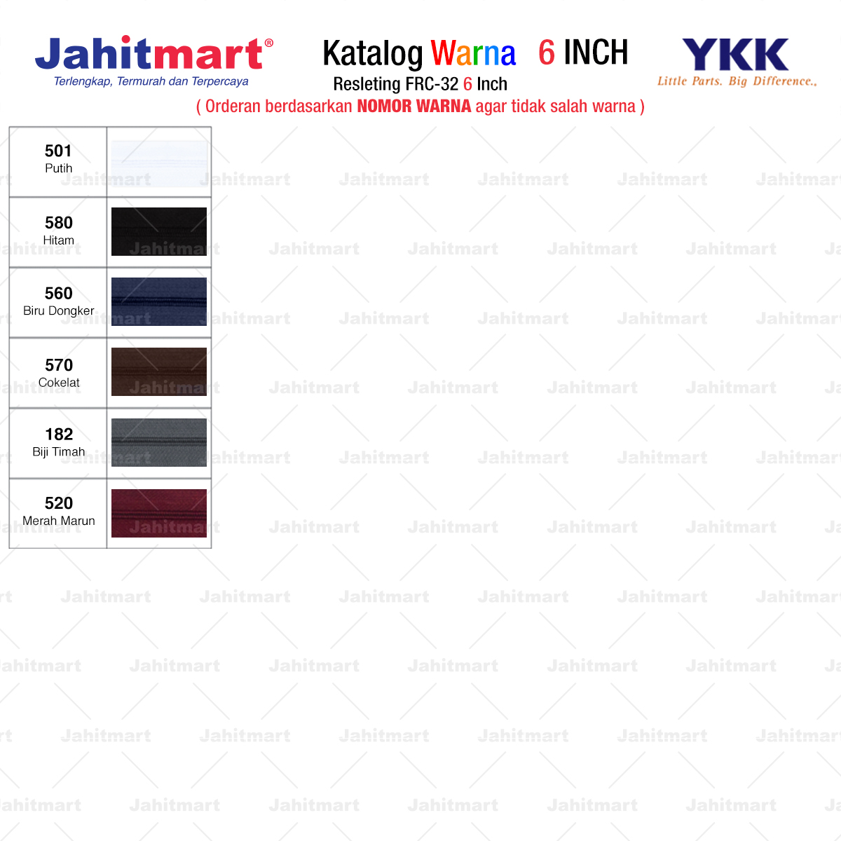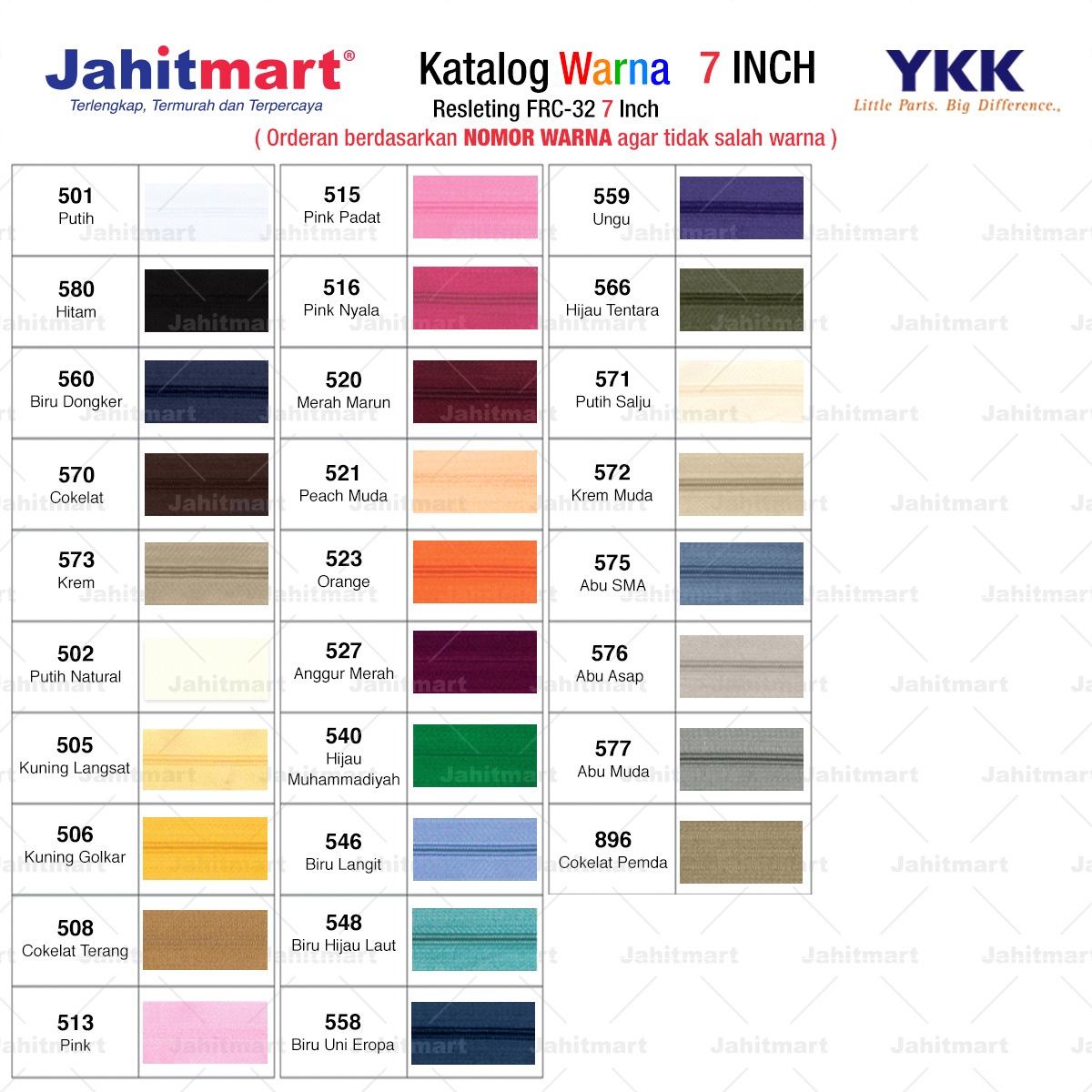 Pemesanan berdasarkan NOMOR WARNA agar tidak salah warna.