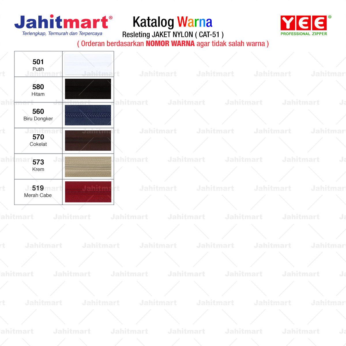 Orderan berdasarkan NOMOR WARNA agar tidak salah warna.