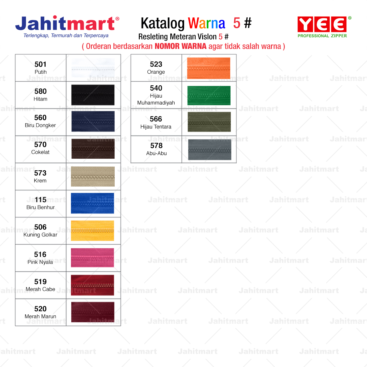 Resleting Roll / Zipper Vislon “YEE” merupakan resleting dengan gigi terputus-putus, memiliki gigi lebih besar serta interval yang lebih panjang, resleting ini umumnya diaplikasikan pada jaket, tas, pounch, wristlet, dll.