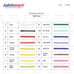 Hitam, Putih, Biru Muda, Biru Tua, Coklat Susu, Fushia, Hijau Daun, Hijau Muda, Kuning, Kuning Kunyit, Kuning Muda, Merah, Orange, Pink, Ungu Muda, Ungu Tua