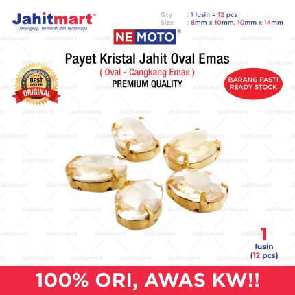 Payet Kristal Jahit Oval Emas