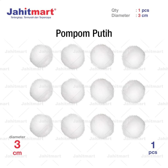 Pompom Warna 30 mm (3cm) Putih