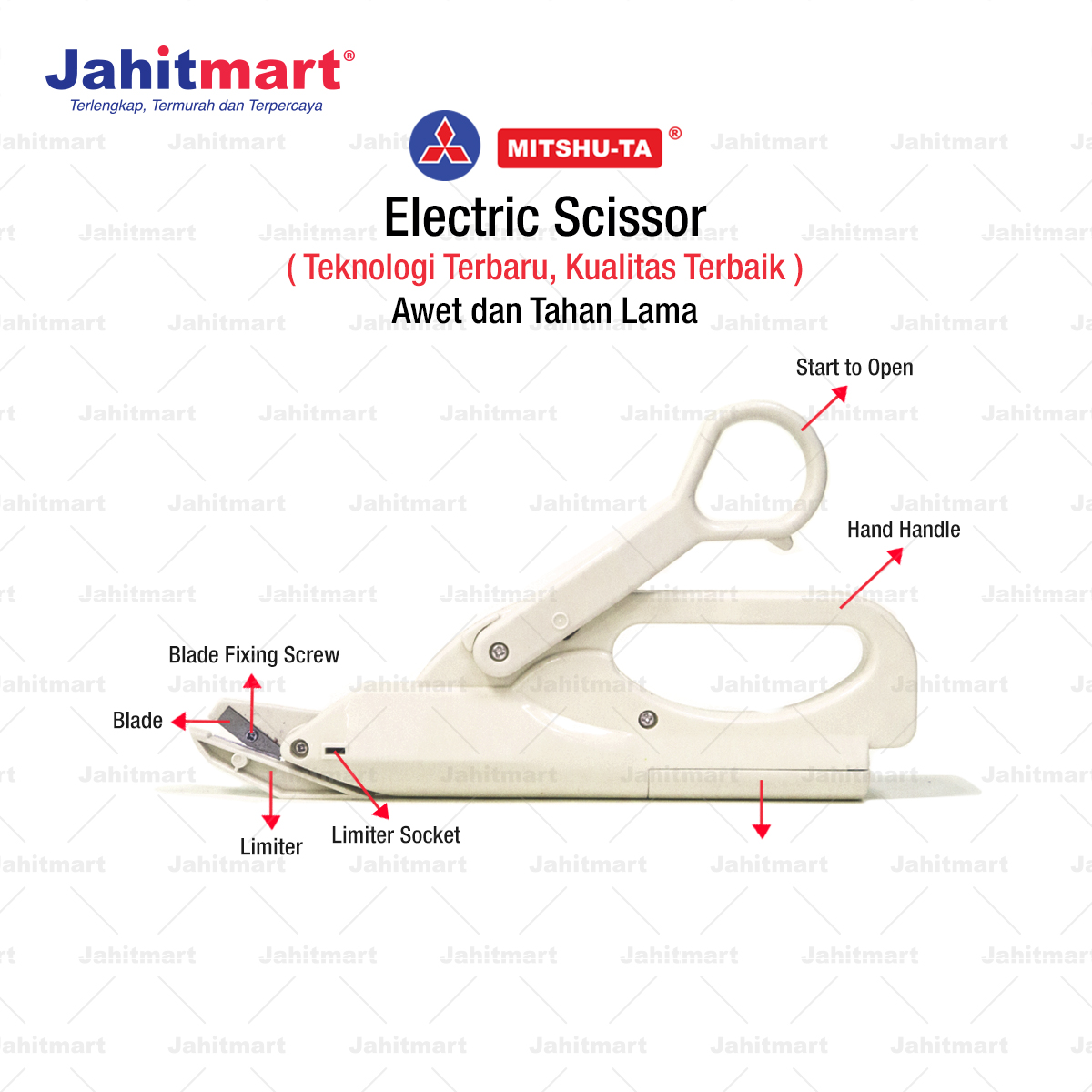 SKU: 014 01 08 01 01 01 Kategori: AKSESORIS JAHIT & PERALATAN, GUNTING & PEMOTONG Tag: Electric Scissor, Gunting, Mitshu-Ta, MITSHUTA, scissor