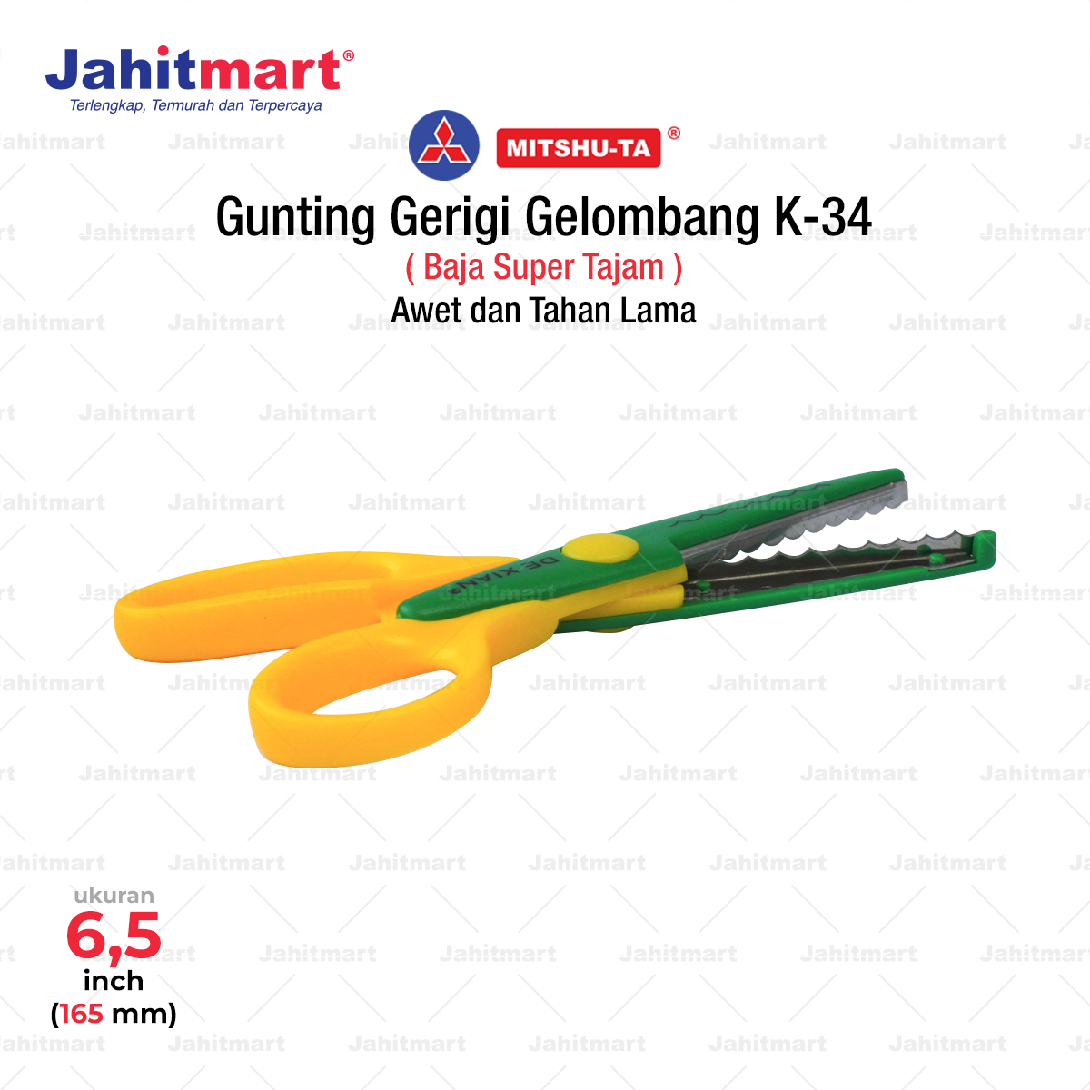 Gunting Gerigi Gelombang-K34 merupakan gunting yang menghasilkan potongan bergelombang, dapat digunakan sebagai alat dalam membuat kerajinan tangan.