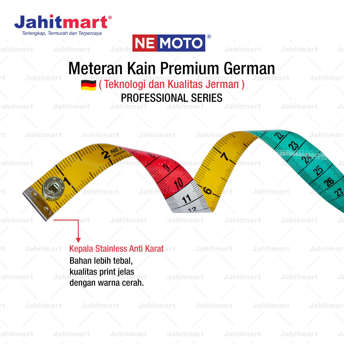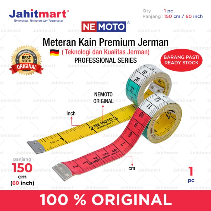 SKU: 015 02 02 01 01 Kategori: AKSESORIS JAHIT & PERALATAN, PENGUKUR Tag: jahitmart, Meteran, Meteran Kain, Meteran Kain Premium, Meteran Kain Premium Jerman, NEMOTO, Original