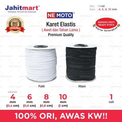 Karet Elastis 707 merk NEMOTO dapat digunakan untuk karet pinggang rok ataupun celana, selain itu karet elastis ini juga dapat digunakan pada sudut sprei sehingga sprei dapat menutupi tempat tidur dengan rapi.
