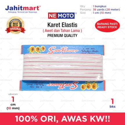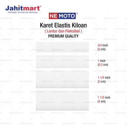Karet Elastis 725, Lebar 1 inch (2,5 cm) per roll atau per meter, merk NEMOTO Rp2.900 – Rp66.000