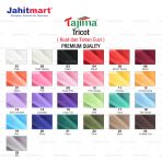 01. Putih, 02. Putih Gading, 03. Hitam, 04. Merah, 05. Merah Terang, 06. Marun, 07. Salem, 08. Pink, 09. Dusty Pink, 10. Pink Terang, 11. Kuning, 12. Kuning Jeruk, 13. Soft Lavender, 14. Lavender, 15. Ungu Tua, 16. Mint, 17. Toska, 18. Biru Muda, 19. Biru, 20. Navy, 21. Hijau, 22. Olive, 23. Krem, 24. Cokelat Tua, 25. Abu