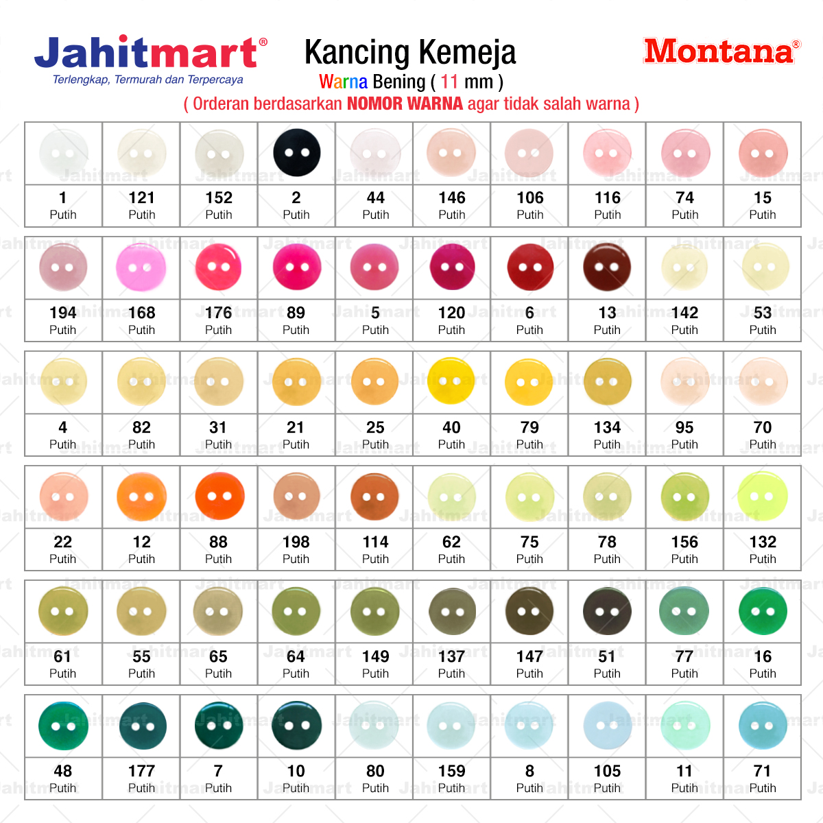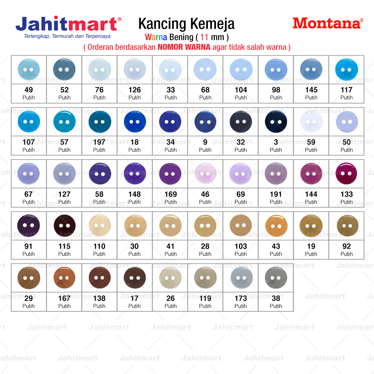 Kancing Kemeja 18L - 11mm Warna Solid Merk MONTANA Rp300
