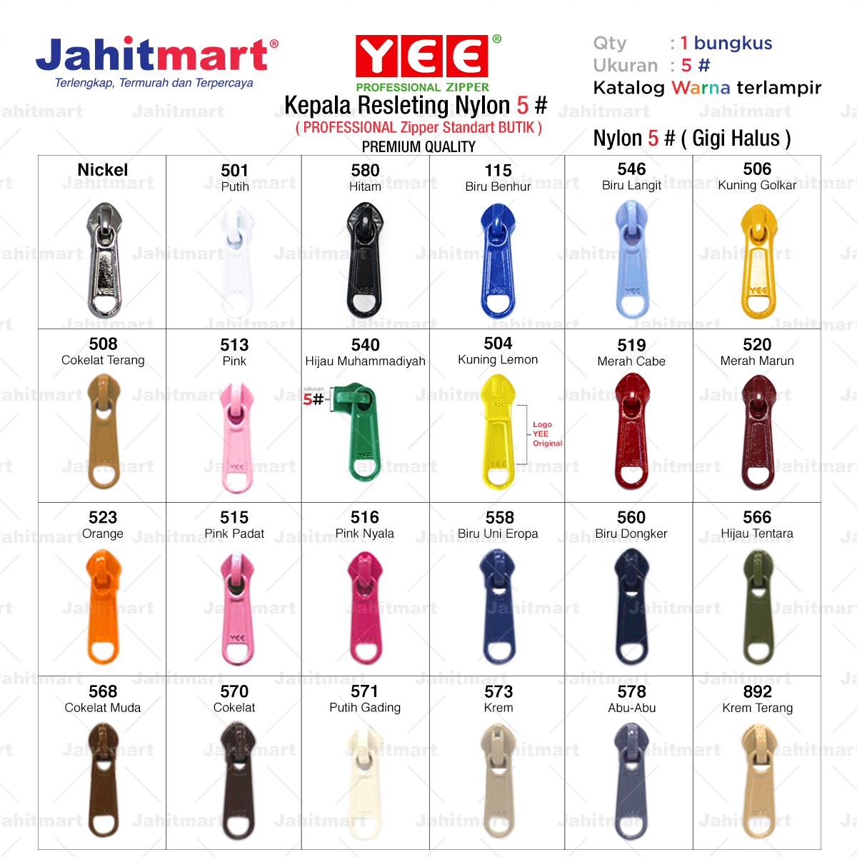 Beranda RITSLETING KEPALA RITSLETING Kepala Resleting Nylon 5 # Merk YEE – Grosir