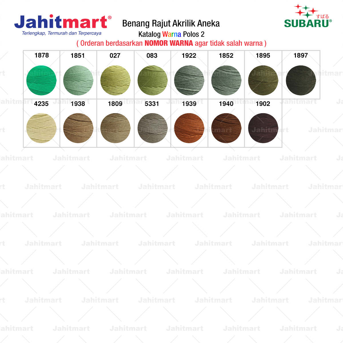 Pemesanan berdasarkan NOMOR WARNA agar tidak salah warna.