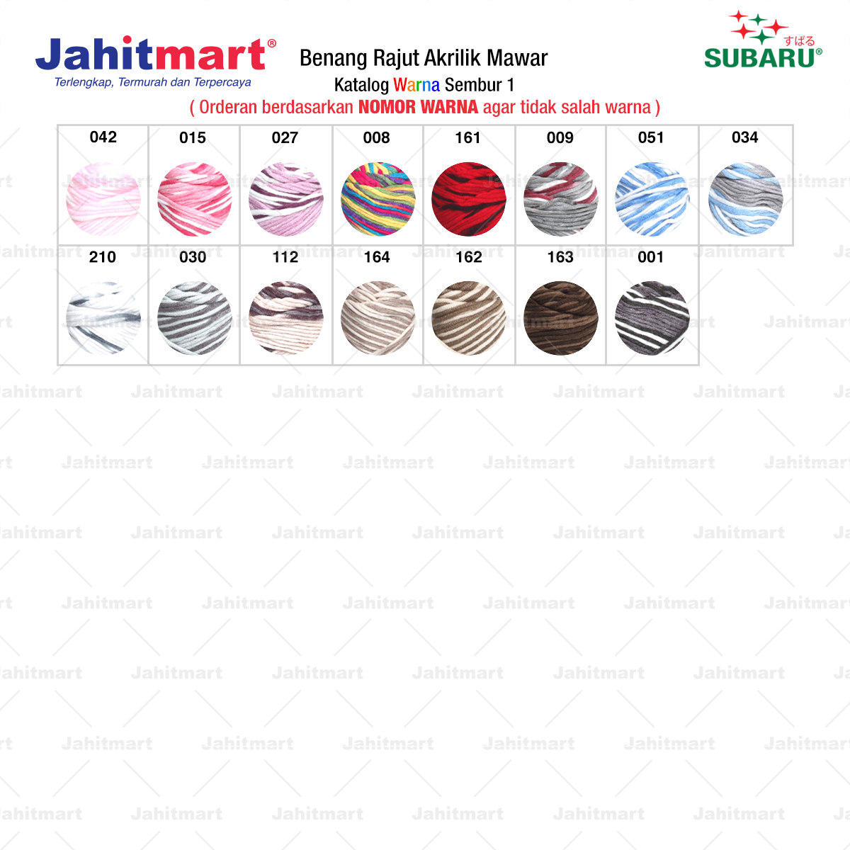 Pemesanan berdasarkan NOMOR WARNA agar tidak salah warna.