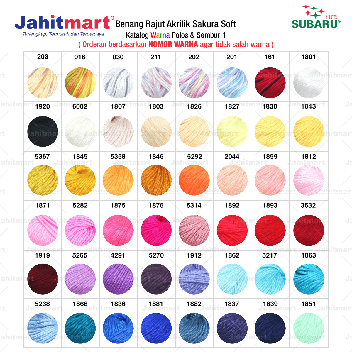 Pemesanan berdasarkan NOMOR WARNA agar tidak salah warna.
