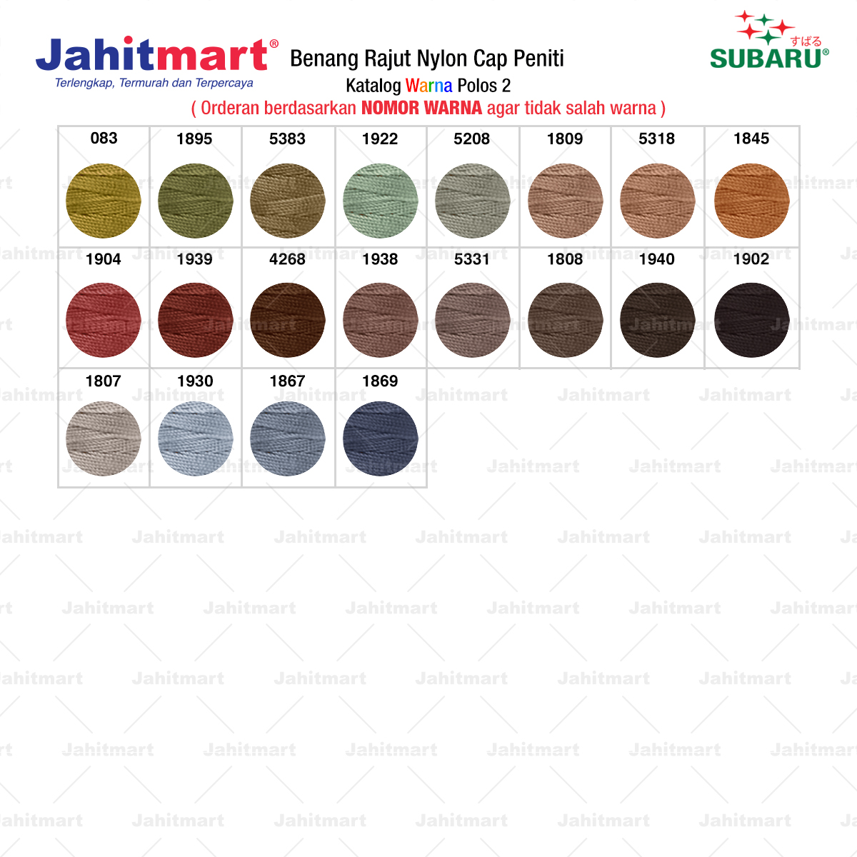 Pemesanan berdasarkan NOMOR WARNA agar tidak salah warna.