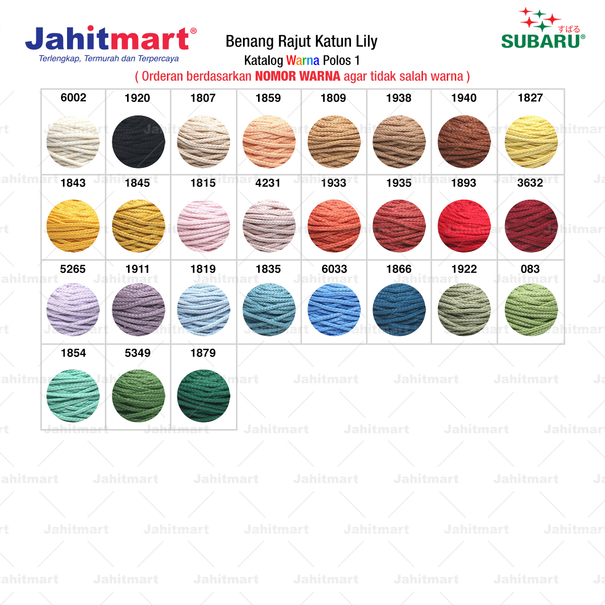 Beranda ANEKA BENANG RAJUT & ALAT RAJUT BENANG RAJUT Benang Rajut Katun Lily Polos Merk SUBARU