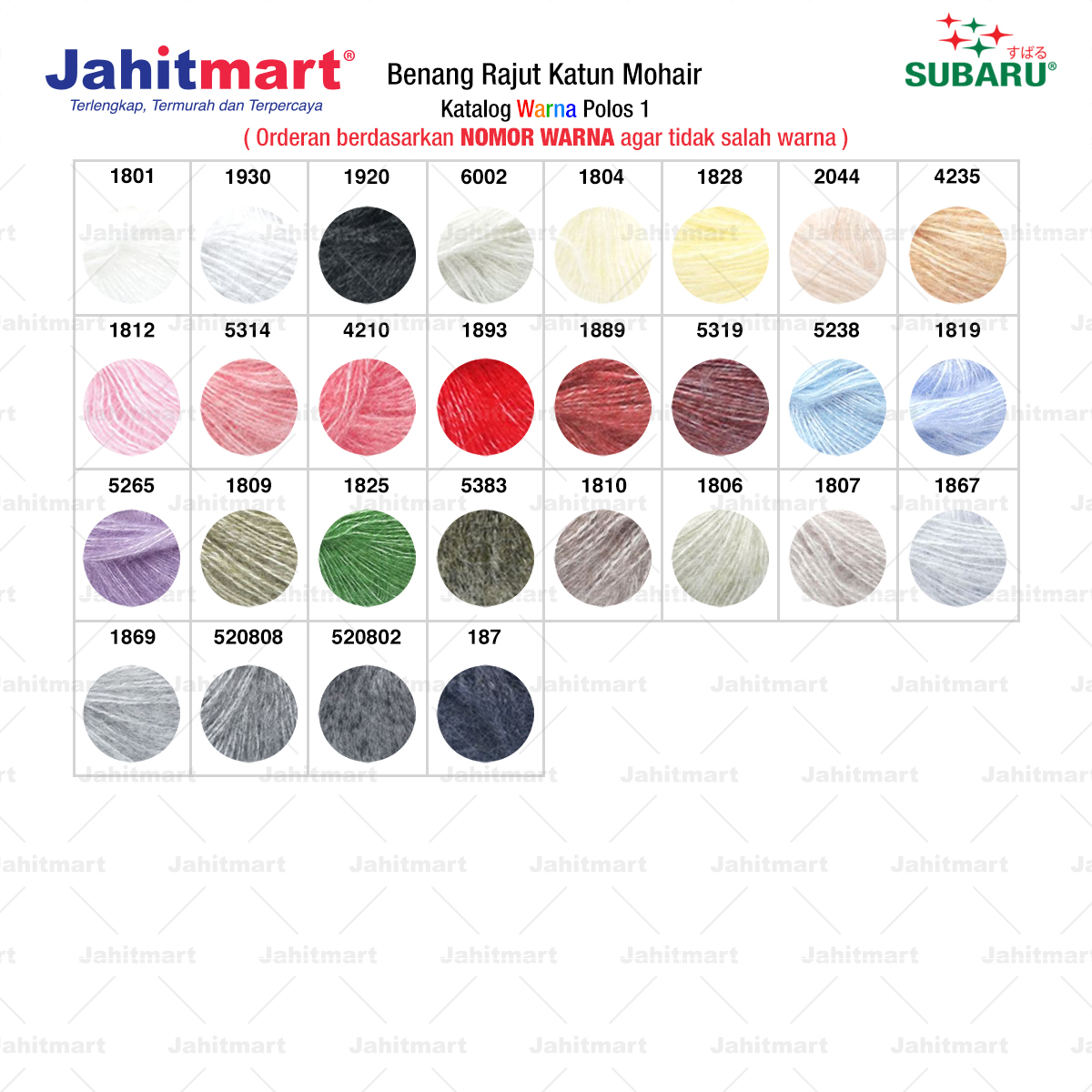 BENANG RAJUT KATUN MOHAIR POLOS MERK “SUBARU”
