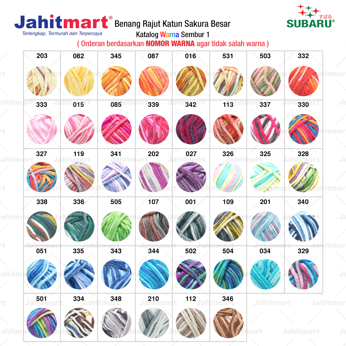 Beranda ANEKA BENANG RAJUT & ALAT RAJUT BENANG RAJUT Benang Rajut Katun Sakura Besar Sembur Merk SUBARU