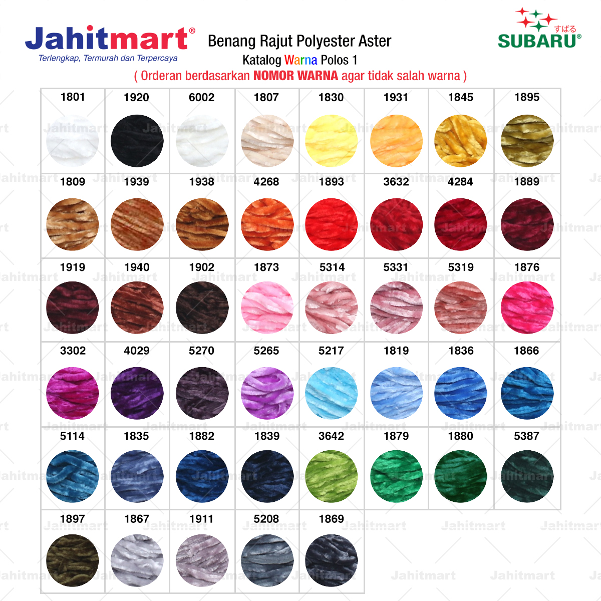 Pemesanan berdasarkan NOMOR WARNA agar tidak salah warna.
