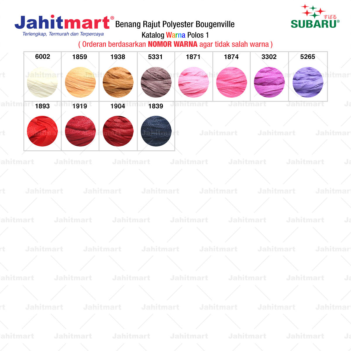 Pemesanan berdasarkan NOMOR WARNA agar tidak salah warna.
