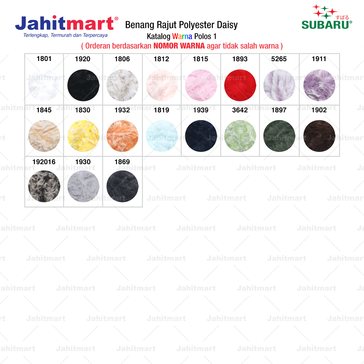Pemesanan berdasarkan NOMOR WARNA agar tidak salah warna.