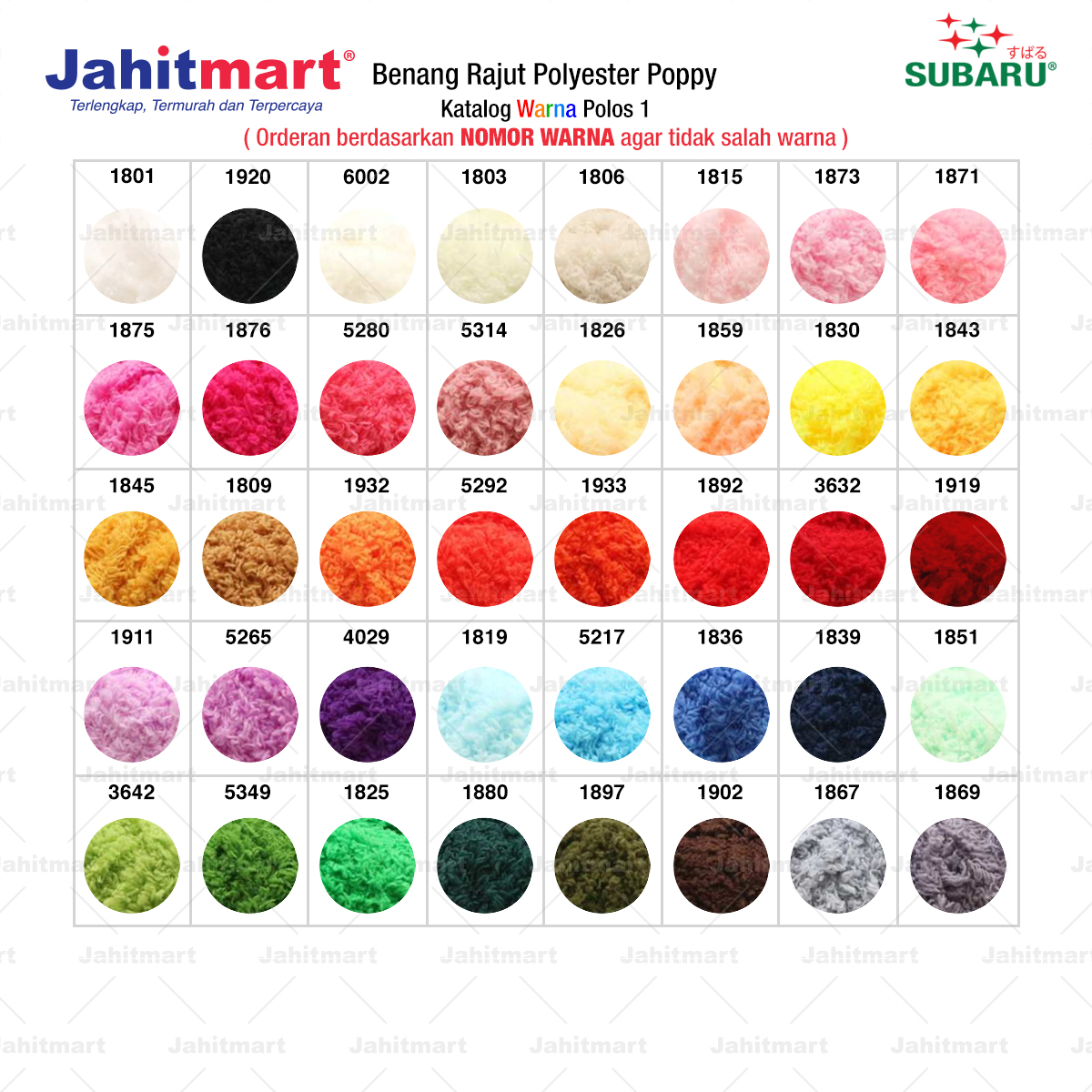 BENANG RAJUT POLYESTER POPPY POLOS MERK “SUBARU”