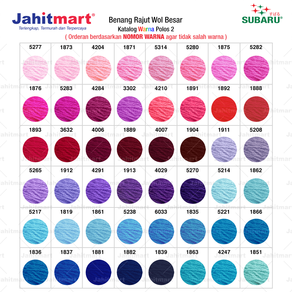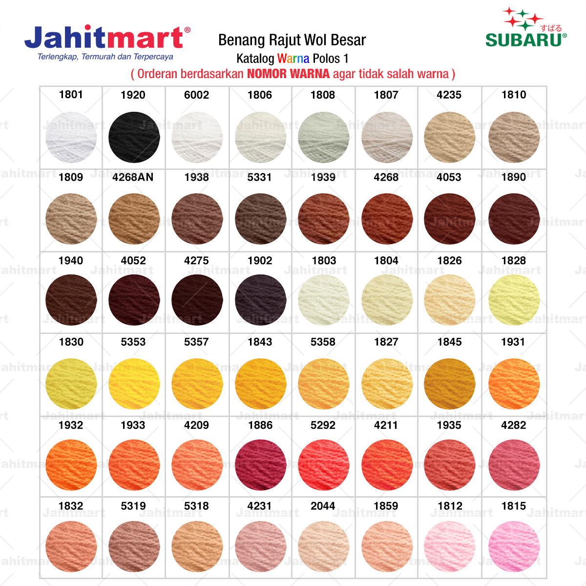 Pemesanan berdasarkan NOMOR WARNA agar tidak salah warna.