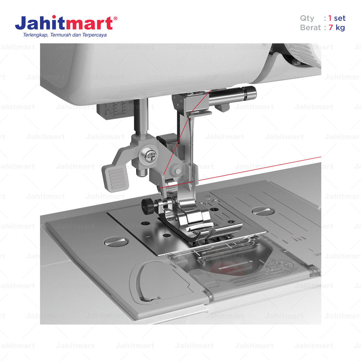 – 1x Tool Kit (Sepatu Lubang Kancing, Sepatu Pasang Kancing, Sepatu Pasang Ritsleting, Sepatu Semi Obras, Sepatu Kelim/Sum, Sepatu Monogram Dekoratif, Sikat Pembersih Mesin, Spool, Jarum, Pendedel Bahan)