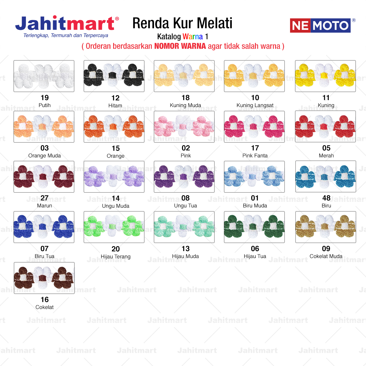 Pemesanan berdasarkan NOMOR WARNA agar tidak salah warna.