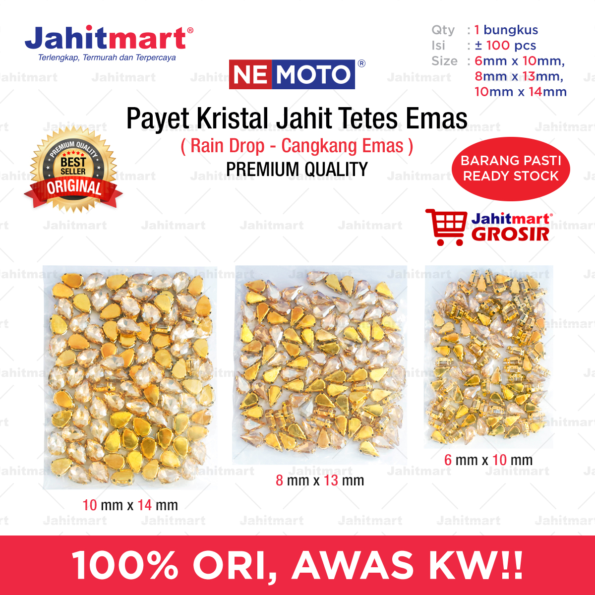 Payet Kristal Jahit Oval Emas Merk NEMOTO - Grosir Rp75.000 – Rp110.000