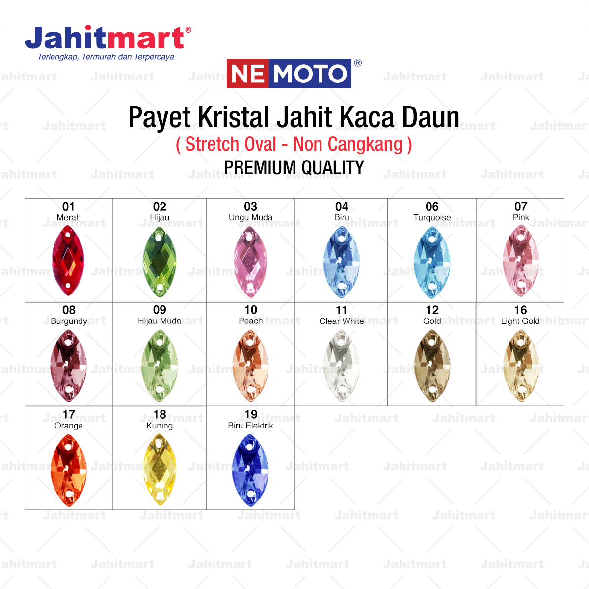 PAYET KRISTAL JAHIT KACA DAUN MERK “NEMOTO”