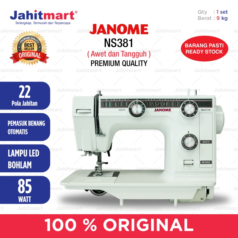 Kategori: MESIN JAHIT RUMAH TANGGA PORTABLE Tag: janome NS381, Mesin Jahit, mesin jahit janome